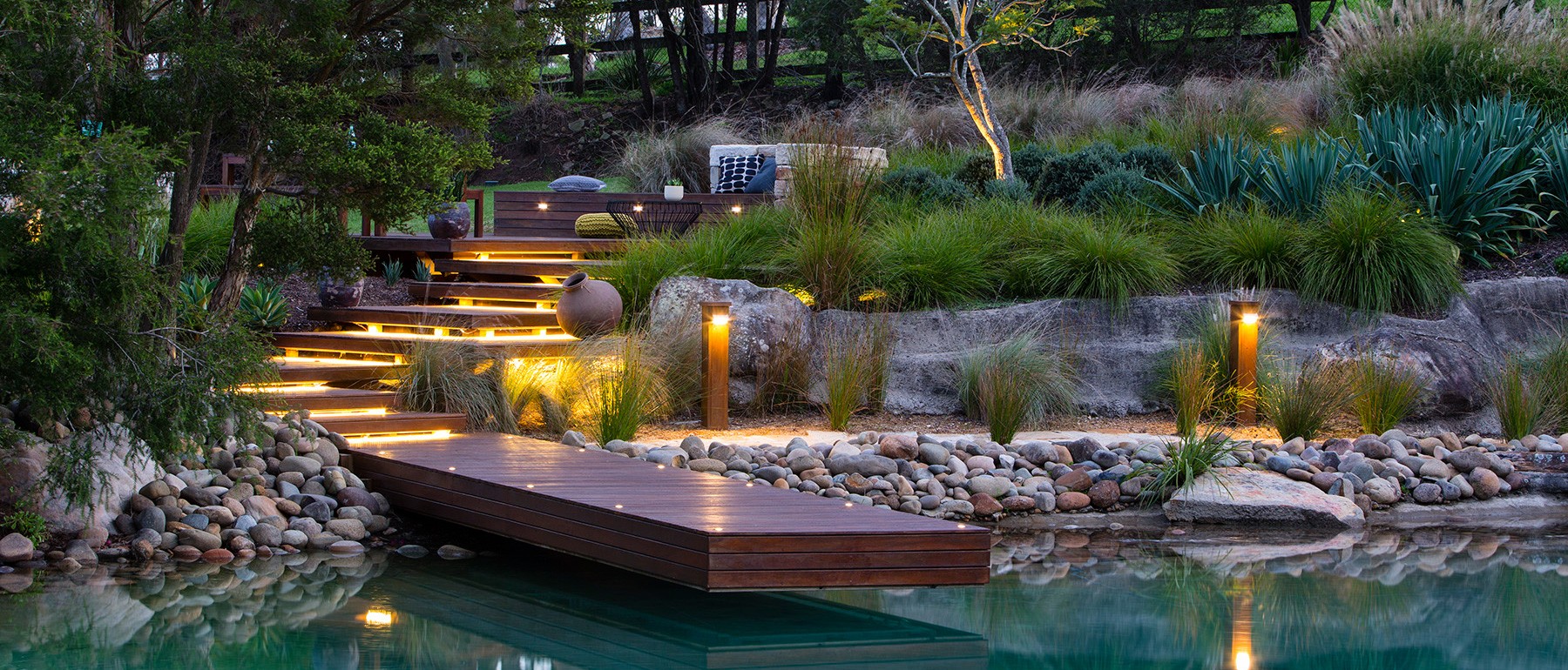 Специально разработанные светильники и прожекторы помогут вам преобразить ваш ландшафт в темное время суток. Создавайте уникальные архитектурные силуэты и подчеркивайте ключевые элементы сада.