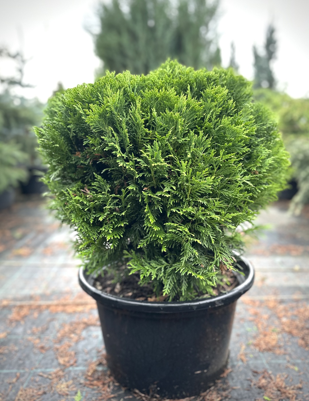 Туя западная Даника шаровидная - Самая популярная в мире шаровидная туя. Необычайная популярность объясняется плотной регулярной кроной и правильным рядным вертикальным расположением хвоинок.
