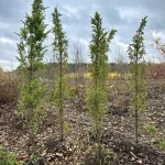 Крона густая, узкопирамидальная. В 10 лет достигает высоты до 2 м.