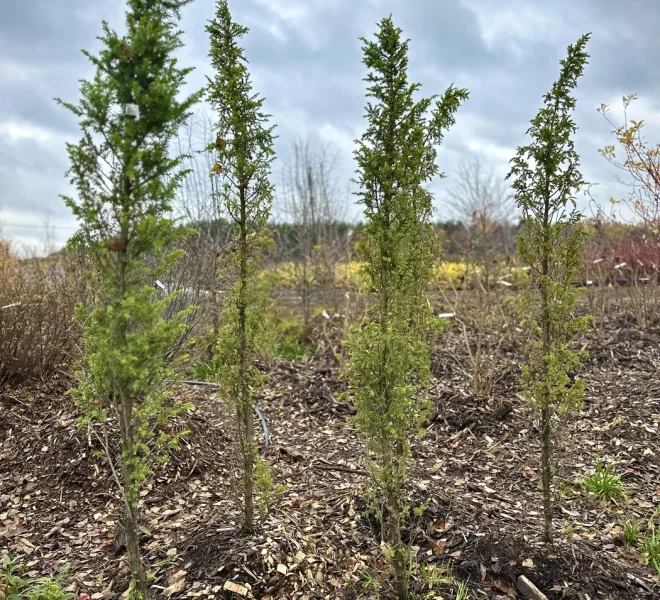 Можжевельник обыкновенный Хиберника (Juniperus communis Hibernica) — хвойный вечнозеленый колонновидный кустарник с густой колонновидной кроной. Ветви прямые, плотно прижатые к стволу, растут вверх. Высота взрослого растения – 4 м, диаметр – 1,5 м.