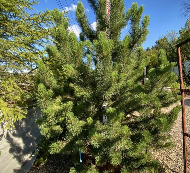 Сосна горная унцината — хвойное дерево с правильной узкой кроной конусовидной формы. Ветви на концах повернуты вверх. С возрастом сосна горная унцината становится более раскидистой. Дерево обладает короткой блестящей хвоей ярко-зеленого цвета. Длина хвои: 5-8 см, ширина: 1,5-2 мм. Сосна горная описание: дерево с корой в коричнево-серых и черно-серых тонах, чешуйки угловатые, у основания ствола расщепляются. Плоды: шишки асимметричной формы, сгруппированные на коротких ножках по 1-3. Молодые шишки фиолетового цвета, после созревания становятся темно-коричневыми. У шишек клювообразные чешуйки, из-за формы которых сосна получила свое название — унцината, что означает крючковатая. Созревают шишки в течение двух лет.