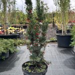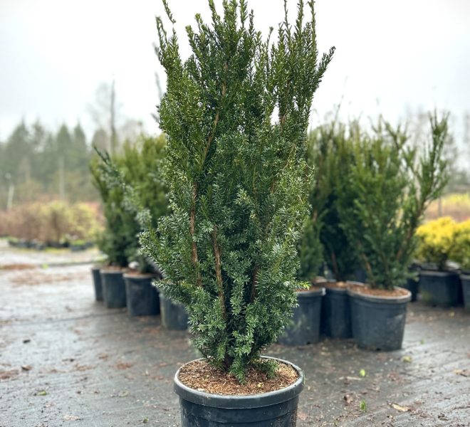 Чаще всего из тиса Хилли формируют изгороди. Но он красиво смотрится и в вазонах. Поскольку растет в высоту и не дает обширной тени, уместен возле клумб