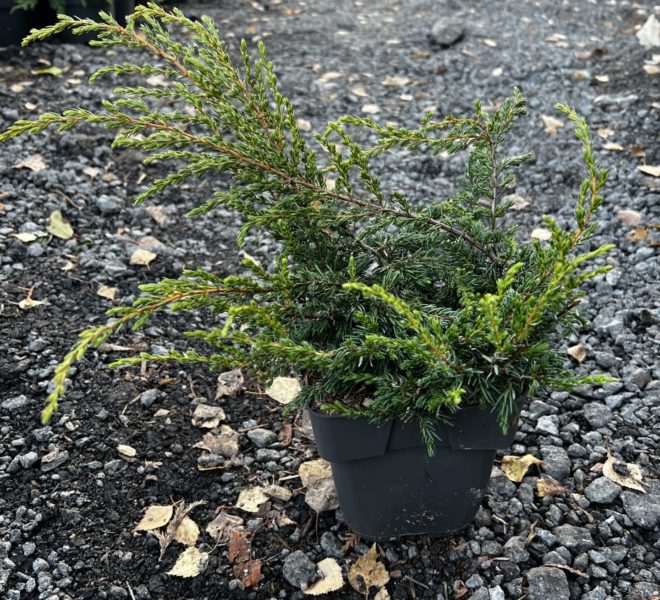 Можжевельник обыкновенный Репанда (Juniperus communis Repanda) — плотный густой хвойный кустарник, высотой не более 0,5м и разрастающийся в диаметре до 2,5м. Годовой прирост около 10см в ширину. Боковые побеги широко-выдающиеся, равномерно распространены во все стороны. Хвоя игольчатая, короткая, очень мягкая, густая, темно-зеленая с серебристыми полосками на верхней стороне, зимой буреет. Неприхотлив к условиям произрастания. Устойчив к городской среде.