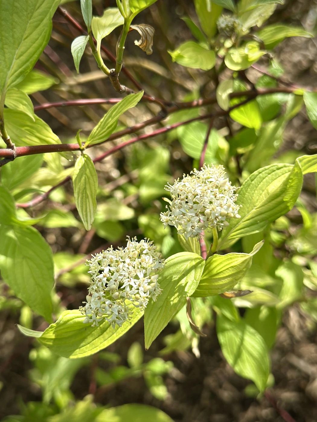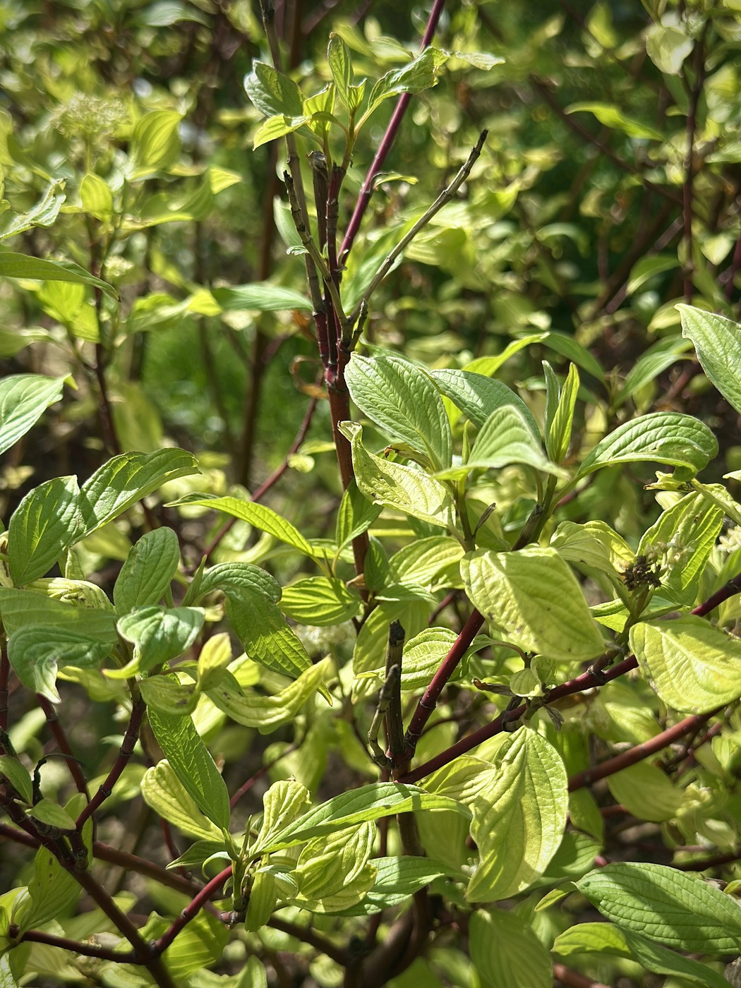 Высота до 2 м, ширина до 2-3-х м. Крона раскидистая. Побеги вертикально растущие, слегка полегающие. Побеги желто-зеленые или желтые, окрашиваются в красные тона к зиме, более ярко на освещенной стороне. Листья цельные, продолговатые, с 5-7 жилками, зеленые, к осени желтеют, часто приобретают красноватые тона. Цветки желтовато-белые, собраны в щитковидные соцветия. Цветет в мае-июне и до осени. Плоды белые, несъедобные, шаровидные ягоды. Растет быстро. Образует корневые отпрыски.
