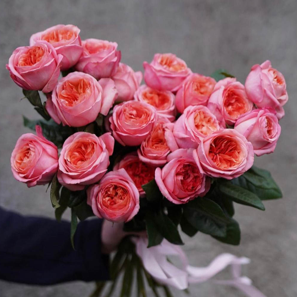 Цветок крупный, диаметром 10-12 см, густомахровый, насчитывает 60 и более лепестков, чашевидной или розетковидной ностальгической формы. Окраска варьируется от нежно-лососевого до насыщенного персикового и пыльно-розового, с более ярким центром. Обладает легким ароматом с оттенком лаванды. Цветки появляются в соцветиях по 3-5 штук на стебле.