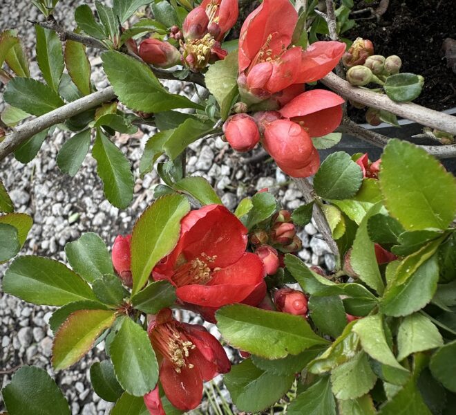 Морозостойкий кустарник, диаметром 1-1,5 м с медленным ростом и колючими побегами. Цветет в апреле-мае огненно красными цветами с желтыми тычинками. Плоды съедобные жёлтые, яблоковидные ароматные. Предпочитает солнечное место, хорошо дренированные, кислые почвы.