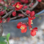 Айва великолепная ‘Crimson and Gold’ описание: кустарник отличается красивыми цветами, диаметр которых достигает около 3 см. Кустарник очень красиво и обильно цветет: крупные тычинки ярко-желтого цвета контрастируют лепестками красного оттенка. Время цветения: май. У айвы Кримсон энд Голд цветение длится три недели. Цветки достигают диаметра в 3 см. Кустарник плодоносящий, со съедобными плодами, которые имеют похожую на яблоко форму. Период плодоношения: середина сентября — середина октября. Цвет плодов желтый, диаметр: 5 см. От плодов исходит приятный душистый аромат, похожий на запах ананаса. Вес плода 40-80 гр. Плоды айвы содержат большое количество витамина С.