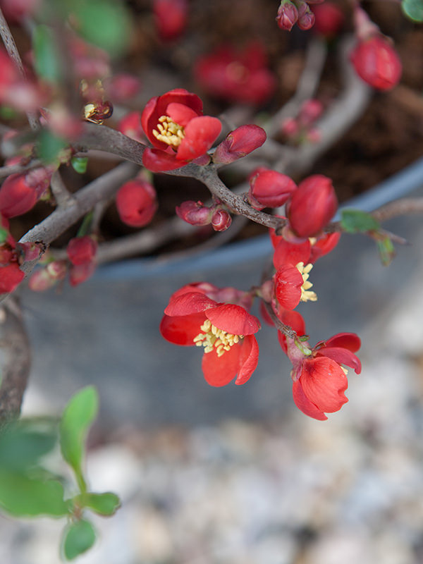 Айва великолепная ‘Crimson and Gold’ — красивый плодоносящий кустарник небольшого роста с дугообразными густыми ветвями. Во взрослом возрасте достигает высоты около 1 метра. Раскидистая крона диаметром около 1 метра. Яркая особенность айвы — ее тычинки желтого цвета, выделяющиеся среди лепестков цветка роскошного темно-красного цвета. Айва растет медленно.