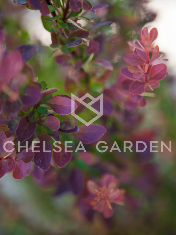 - Листья: небольшого размера (1-3 см), весной и летом пурпурного цвета, осенью цвет меняется, становится красным
