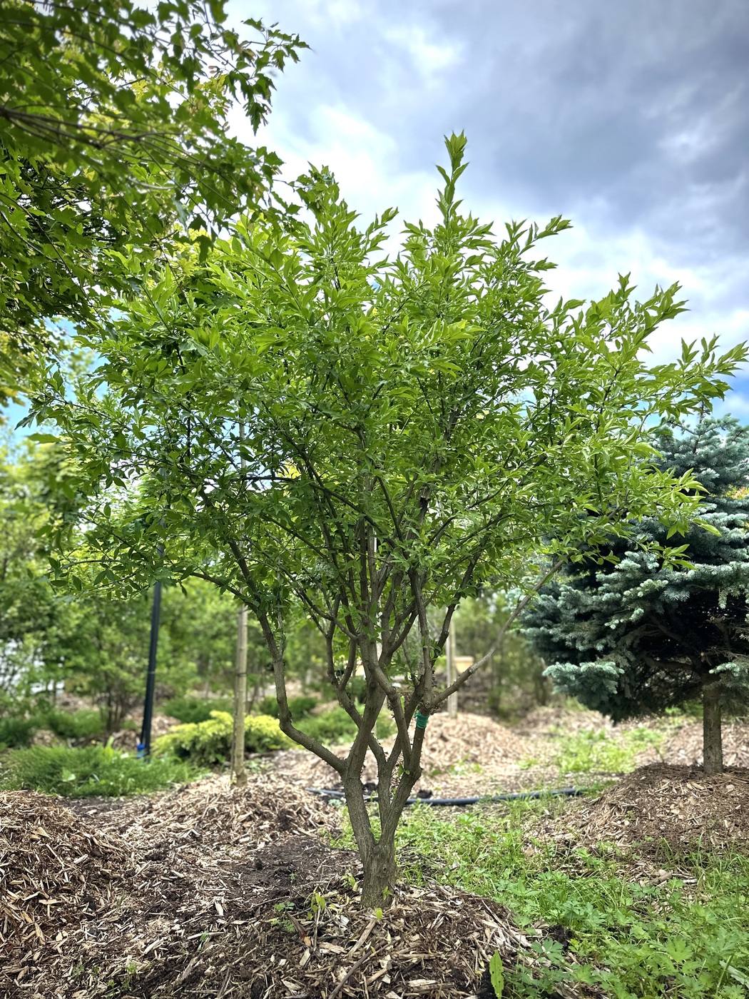Крона дерева обычно пышная и раскидистая. В летний период листья растения зеленого цвета, а осенью приобретают яркий окрас всех оттенков от желтого до ярко-розового. Благодаря этому, он прекрасно смотрится в садах, становясь настоящим украшением.