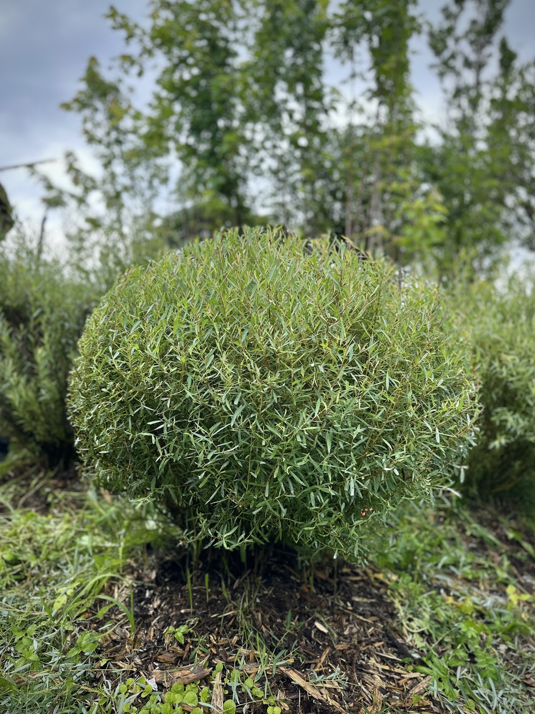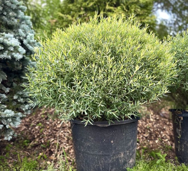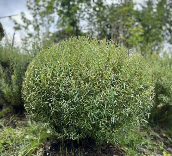 Пурпурная ива – необычный и красивый кустарник шарообразной формы. Выглядит он очень аккуратно и необычно, в уходе совершенно неприхотлив. В среднем растение достигает 3-4 метра в высоту, его листья длинные и заостренные немного отдают синевой. Расположены очень густо на ветвях.