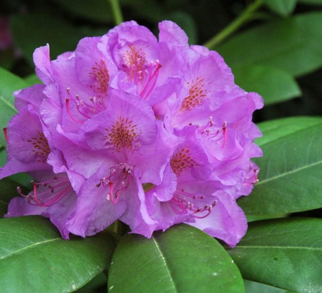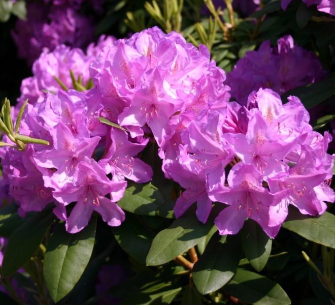 Грандифлорум – один из самых красивых и интересных сортов рододендрона. Это вечнозеленое растение с нежными сиреневыми цветами, из которого получаются отличные живые изгороди.