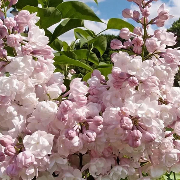 Эту сирень очень любят садоводы за продолжительный период цветения, пышную крону и пушистые тяжелые соцветия от розовато-белого до лилового цвета с перламутровым оттенком.