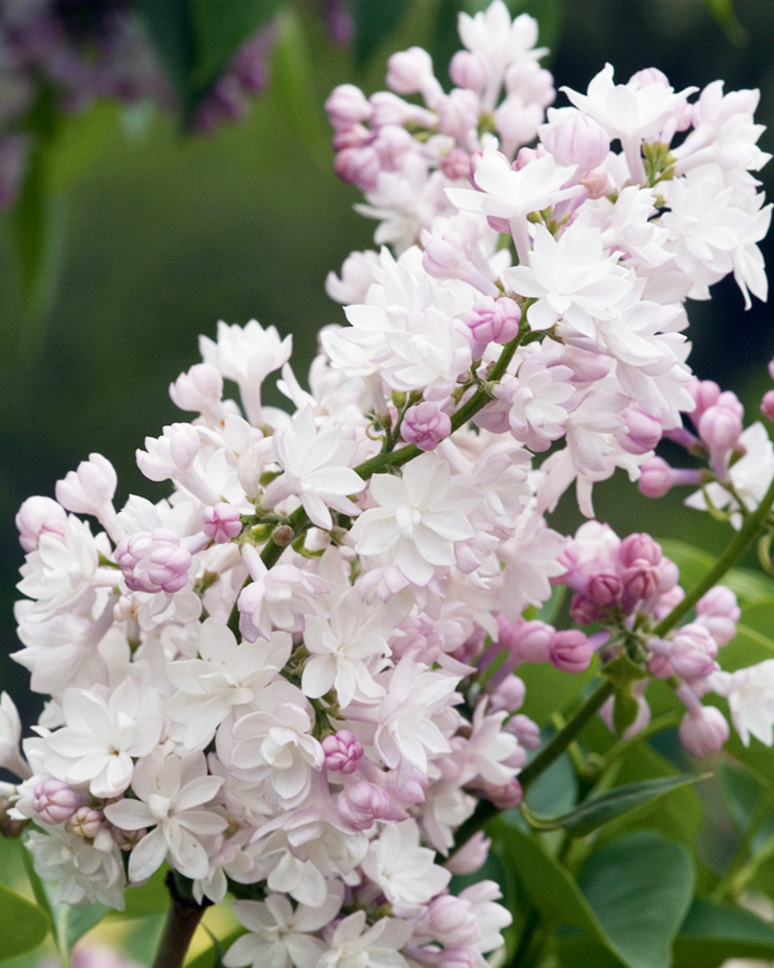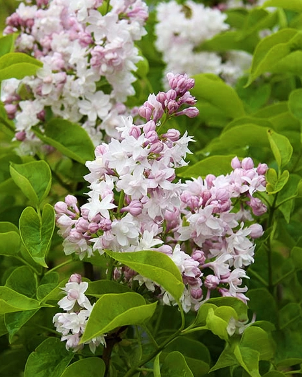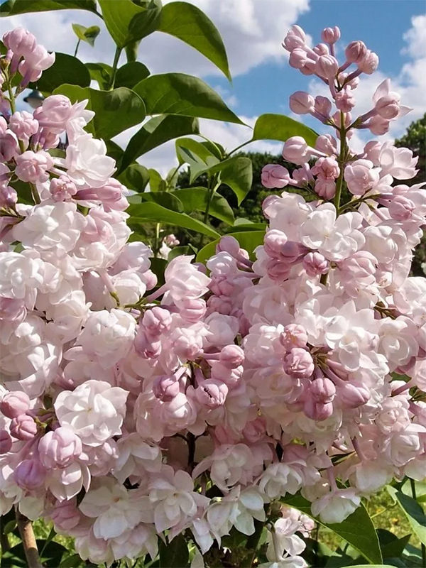 Эту сирень очень любят садоводы за продолжительный период цветения, пышную крону и пушистые тяжелые соцветия от розовато-белого до лилового цвета с перламутровым оттенком.