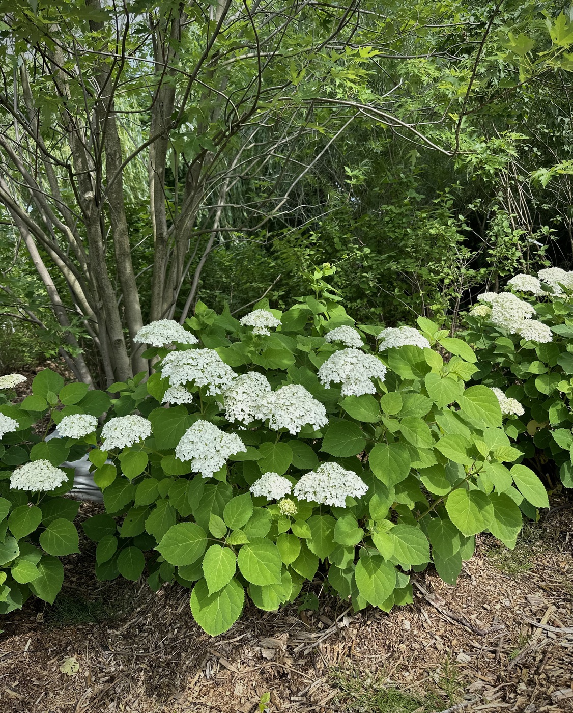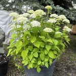 Белые, огромные шары покроют весь куст, начиная с конца июня и вплоть до октябрьских заморозков! Вы практически не увидите листьев между соцветиями. В пике своего цветения на вашем участке будет даже не куст, а огромный белый и очень ароматный шар!