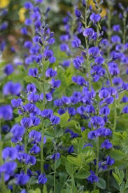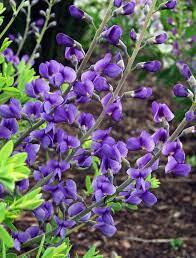 Листья характерные сине-зеленые. Цветки синие. Плодом Баптизии южной является синевато-чёрный стручок