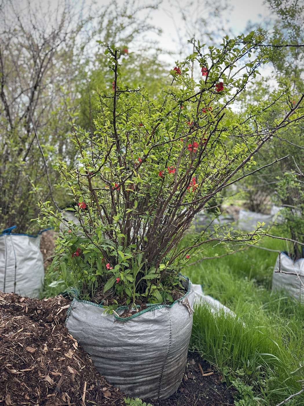 Айва декоративная (140-160см) сумка. Плодоносит на 3-4 год. Мякоть плодов желтая с ароматом лимона. До осени сохраняются на ветках.