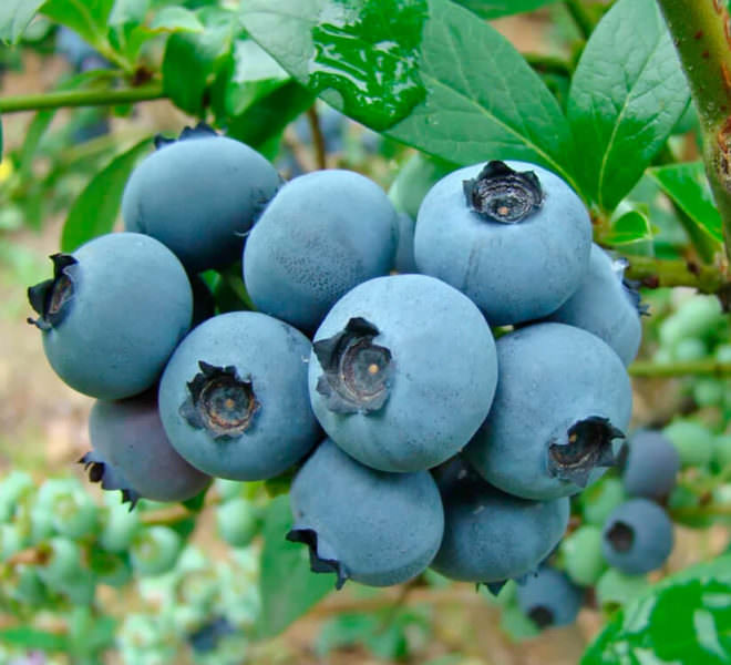 Ягоды средних размеров. Некоторые могут достигать до 20 мм в диаметре. Мякоть плотная. Хорошо переносят транспортировку.