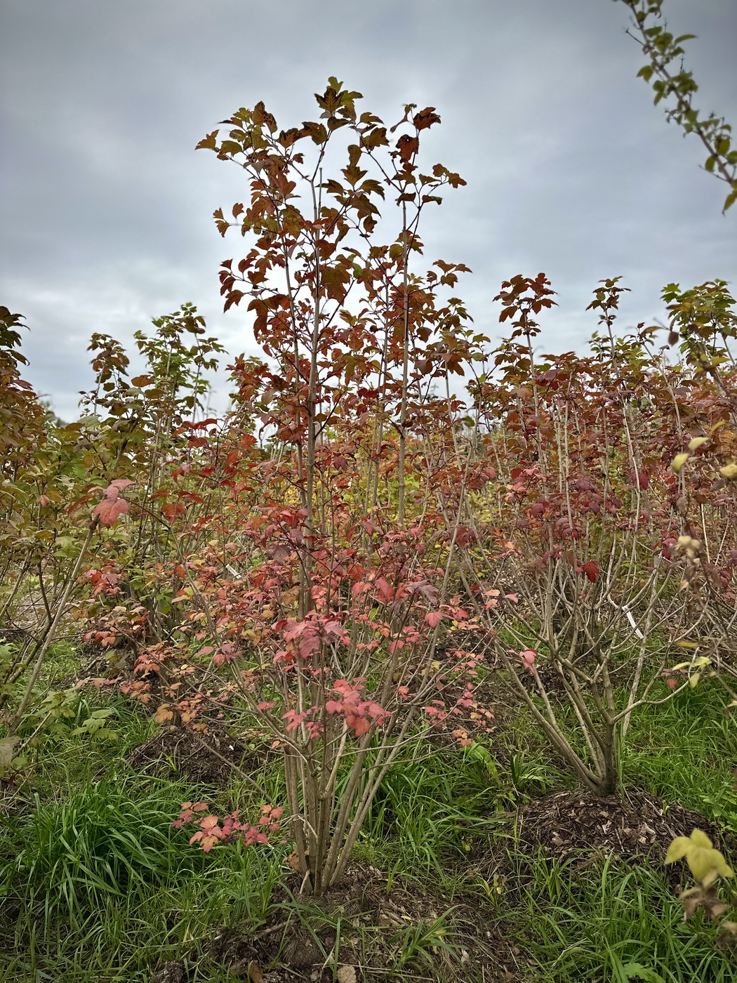 Калина обыкновенная или калина красная (Viburnum opulus) – очень декоративный листопадный кустарник с раскидистой кроной и съедобными плодами, которые могут висеть вплоть до выпадения снега. Принадлежит к семейству Адоксовые. Темп роста быстрый, за год прибавляет в высоту и ширину до 30-40 см. Максимальная высота растения около 5 м, диаметр до 4 м. Побеги широкораскидистой кроны покрыты серо-бурой корой. Листья крупнозубчатые, трех-пятилопастные, сверху темно-зеленые, снизу имеют серовато-зеленый окрас. Осенью листва меняет свой цвет на целую гамму оттенков от желто-красного до багрово-пурпурного. В мае-июне кустарник покрывается белыми, ароматными, зонтиковидными соцветиями, они располагаются на верхушках молодых побегов и придают ему декоративный вид. Плоды – красные шаровидные или овальные ягоды с крупной косточкой, собранные в большие кисти. Именно за цвет плодов растение известно также как калина красная. Калина обыкновенная обладает высокой морозостойкостью и хорошо переносит городские условия. Неприхотлива в уходе. Лучше всего развивается на освещенных солнцем участках, растет и в легкой полутени. Растение предпочитает увлажненные места, но плохо реагирует на застой воды. Весной требуется проводить санитарную обрезку, удалять сухие, мёртвые ветви и формировать красивую крону. Продолжительность жизни растения составляет примерно 50 лет.