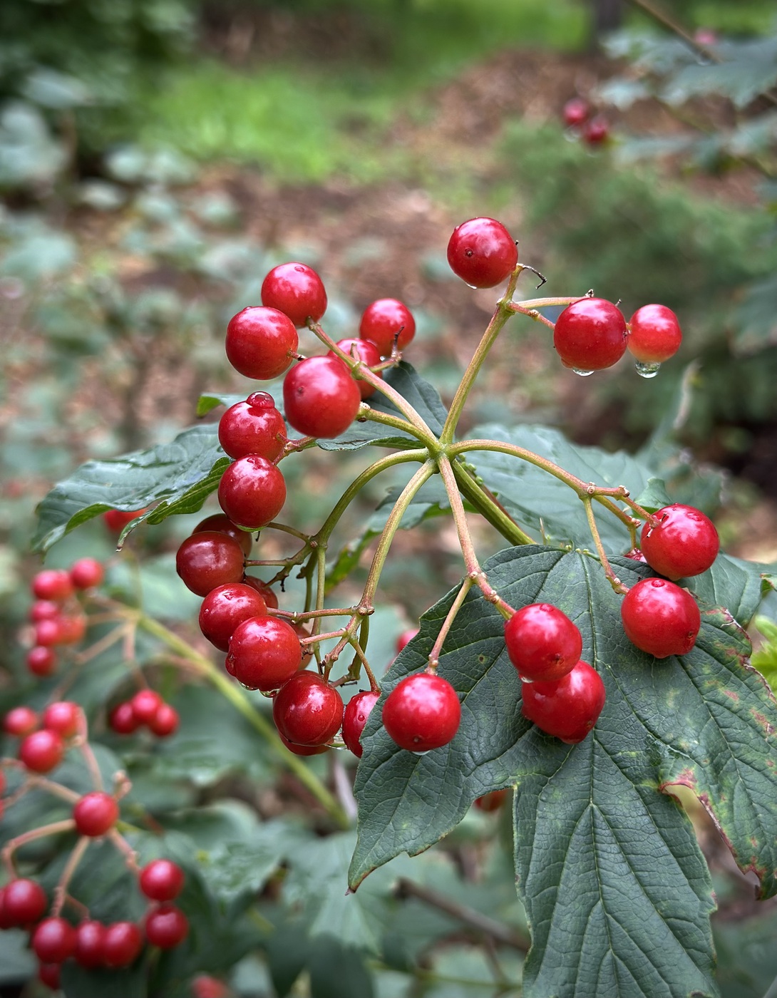 Калина обыкновенная или калина красная (Viburnum opulus) – очень декоративный листопадный кустарник с раскидистой кроной и съедобными плодами, которые могут висеть вплоть до выпадения снега. Принадлежит к семейству Адоксовые. Темп роста быстрый, за год прибавляет в высоту и ширину до 30-40 см. Максимальная высота растения около 5 м, диаметр до 4 м. Побеги широкораскидистой кроны покрыты серо-бурой корой. Листья крупнозубчатые, трех-пятилопастные, сверху темно-зеленые, снизу имеют серовато-зеленый окрас. Осенью листва меняет свой цвет на целую гамму оттенков от желто-красного до багрово-пурпурного. В мае-июне кустарник покрывается белыми, ароматными, зонтиковидными соцветиями, они располагаются на верхушках молодых побегов и придают ему декоративный вид. Плоды – красные шаровидные или овальные ягоды с крупной косточкой, собранные в большие кисти. Именно за цвет плодов растение известно также как калина красная. Калина обыкновенная обладает высокой морозостойкостью и хорошо переносит городские условия. Неприхотлива в уходе. Лучше всего развивается на освещенных солнцем участках, растет и в легкой полутени. Растение предпочитает увлажненные места, но плохо реагирует на застой воды. Весной требуется проводить санитарную обрезку, удалять сухие, мёртвые ветви и формировать красивую крону. Продолжительность жизни растения составляет примерно 50 лет.