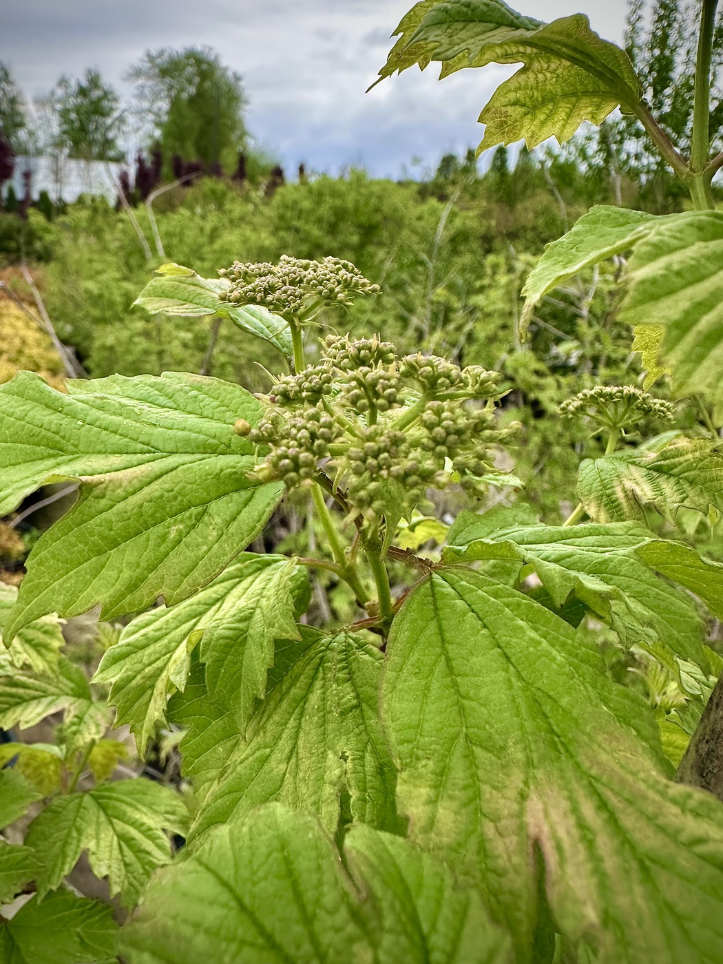 Калина обыкновенная или калина красная (Viburnum opulus) – очень декоративный листопадный кустарник с раскидистой кроной и съедобными плодами, которые могут висеть вплоть до выпадения снега. Принадлежит к семейству Адоксовые. Темп роста быстрый, за год прибавляет в высоту и ширину до 30-40 см. Максимальная высота растения около 5 м, диаметр до 4 м. Побеги широкораскидистой кроны покрыты серо-бурой корой. Листья крупнозубчатые, трех-пятилопастные, сверху темно-зеленые, снизу имеют серовато-зеленый окрас. Осенью листва меняет свой цвет на целую гамму оттенков от желто-красного до багрово-пурпурного. В мае-июне кустарник покрывается белыми, ароматными, зонтиковидными соцветиями, они располагаются на верхушках молодых побегов и придают ему декоративный вид. Плоды – красные шаровидные или овальные ягоды с крупной косточкой, собранные в большие кисти. Именно за цвет плодов растение известно также как калина красная. Калина обыкновенная обладает высокой морозостойкостью и хорошо переносит городские условия. Неприхотлива в уходе. Лучше всего развивается на освещенных солнцем участках, растет и в легкой полутени. Растение предпочитает увлажненные места, но плохо реагирует на застой воды. Весной требуется проводить санитарную обрезку, удалять сухие, мёртвые ветви и формировать красивую крону. Продолжительность жизни растения составляет примерно 50 лет.