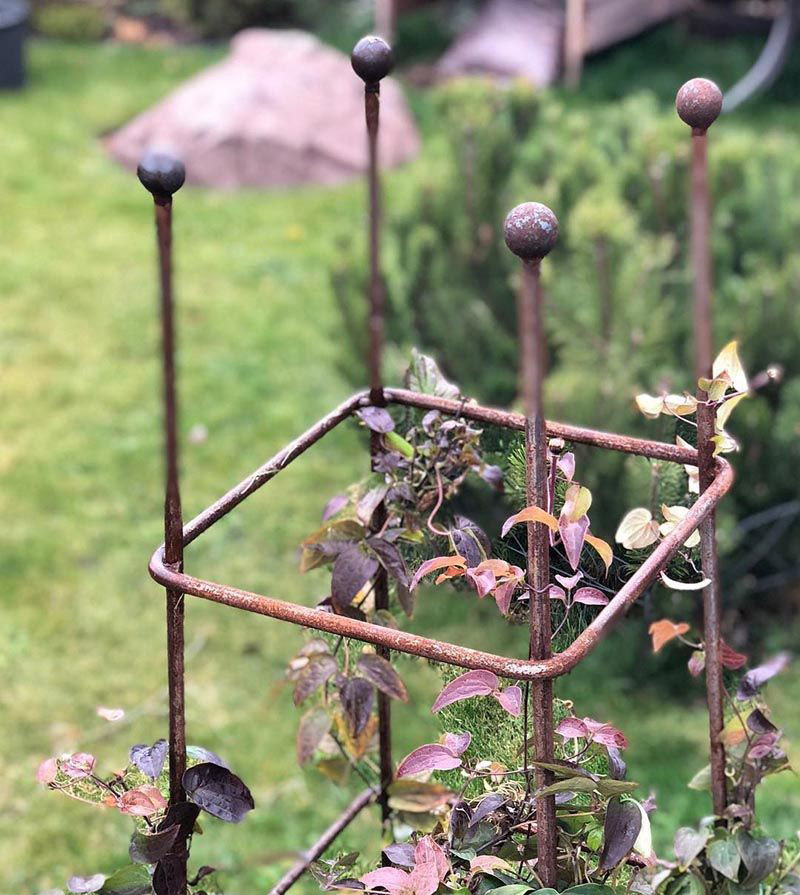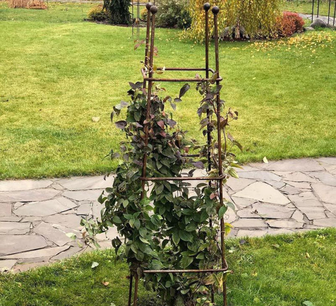 Гармонично вписывается как с густой многолетней растительностью, так и с молодыми растениями практически в любой ландшафт . Обелиски можно устанавливать на участок не только по одному, но и в большем количестве для зонирования сада.