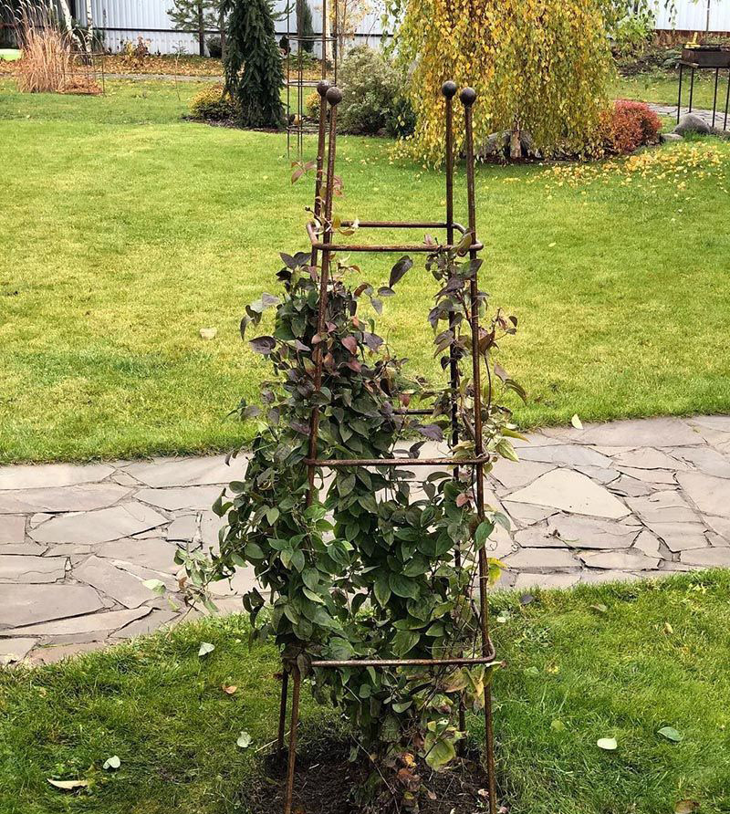 Опора отлично подходит для вьющихся растений, обеспечивает им поддержку при любых погодных условиях.