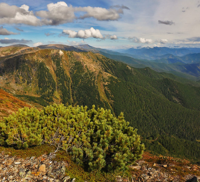 Кедровый стланик, или стланец, сосна стланиковая, малорослая, кедровая низкорослая, кедр низкий, лежачий (Pinus pumila,или Cedar pumila) – кустоподобное стелящееся хвойное деревце до 7 м высотой (обычно 2-3 м) или кустарник с компактной, густой, чашевидной, распростёртой или ажурной кроной (иногда его называют «сланик», что неправильно). Корневая система поверхностная, на рыхлых грунтах стержневая, на мшистых коврах и при песчаных заносах образует придаточные корни от ветвей, что способствует редкой живучести стланика. Древесина тяжёлая, сильно смолистая, свилеватая. Кедровый стланец – чрезвычайно ветроустойчивая порода, лучшая для создания живых изгородей в северных регионах. Молодые побеги с рыжим опушением, прирост до 20 см/год, почки очень смолистые, хорошо защищённые от мороза.