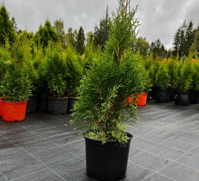 Туя «Смарагд» в ландшафтном дизайне представляется не только центральным предметом гордости двора, но она наполняет территорию бархатным, ненавязчивым дуновением хвои, и очищает воздух. Ее можно гармонично комбинировать с разнообразными культурами. Высаживая туи близко с остальными растениями, сосредоточьте внимание на то, чтобы и каждому подходил грунт по компонентам. Продолжительность жизни этой вечнозеленой красавицы составляет более 150 лет. Она долго будет радовать вас своей зеленью и благоуханием. Помимо всех вышеперечисленных плюсов, туя западная Смарагд цена у нее очень приятная и небольшая. С легкостью реализуйте живую изгородь из хвойных или посадите небольшое количество туй под окнами своего дома. Если у вас остались вопросы, у наших сотрудников без выходных происходит рабочий процесс, поэтому они смогут проконсультировать вас практически в любое время.