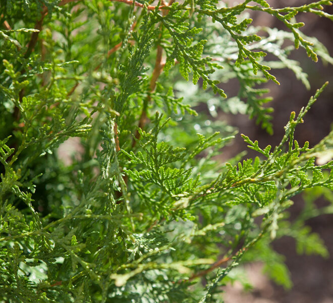 Необходим уход за туей — в виде регулярного полива после посадки. Одного раза в неделю будет достаточно из расчета одно ведро воды на одно дерево. В летний засушливый период полив стоит увеличить. Подкормка происходит весной любыми универсальными комплексными удобрениями.