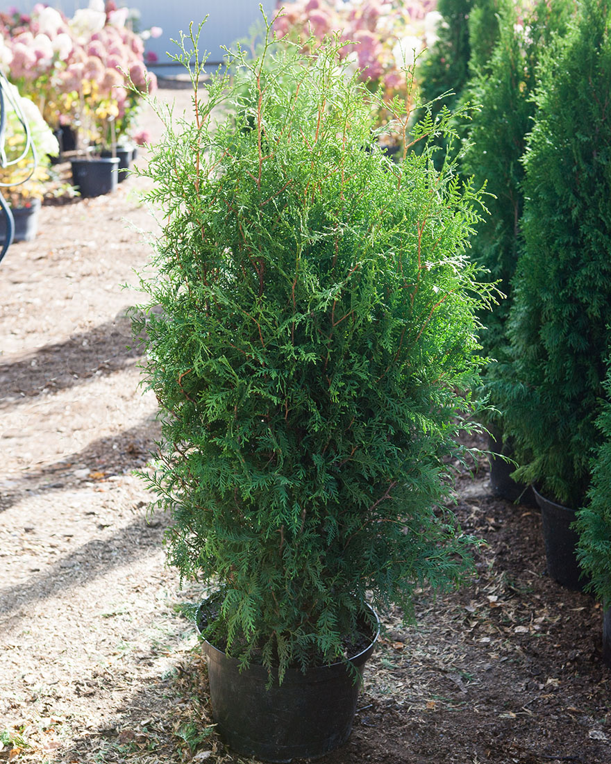Дереву необходим регулярный полив, так как туя — влаголюбива. Чтобы поддерживать форму кроны и необходимую высоту дерева, необходим систематический уход и обрезка побегов.
