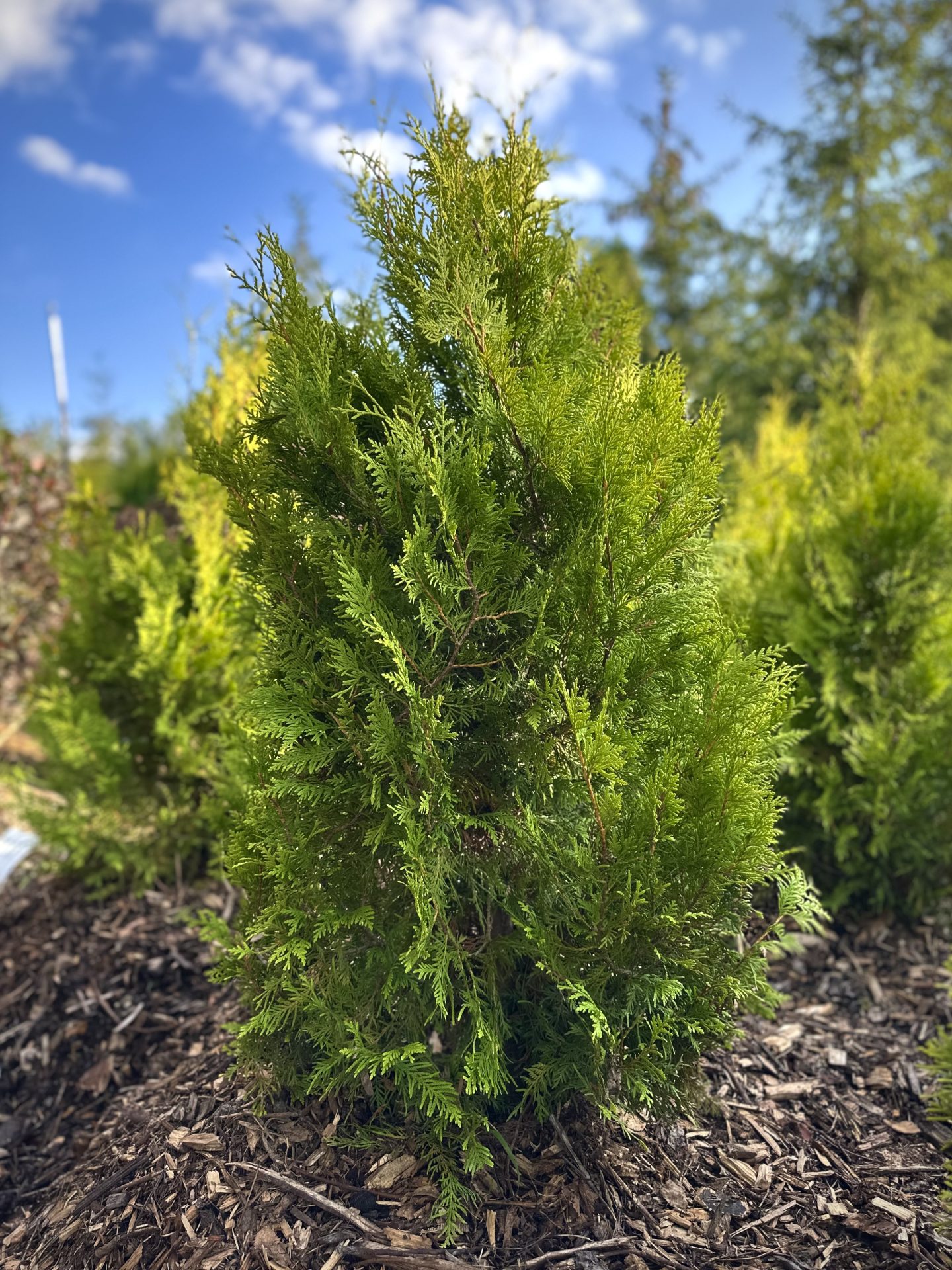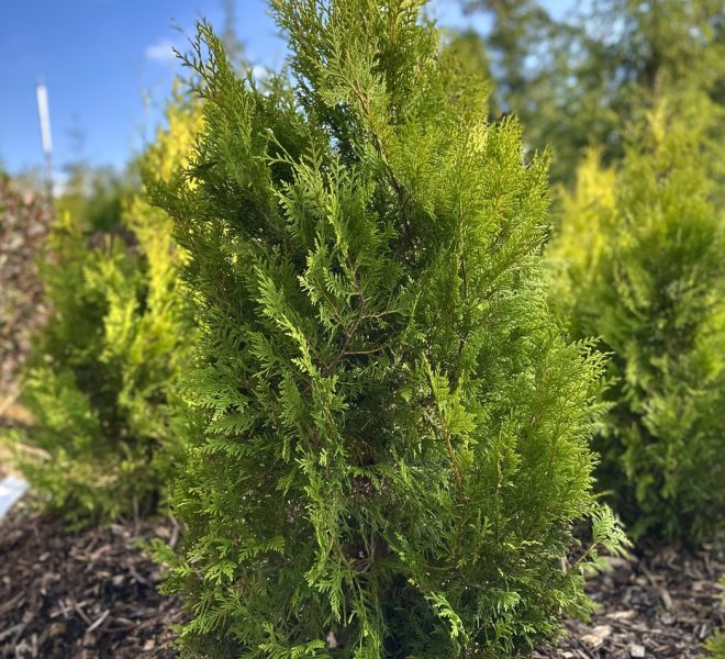 Хвоя чешуйчатая, золотисто-жёлтая, сохраняет привлекательный оттенок даже зимой.