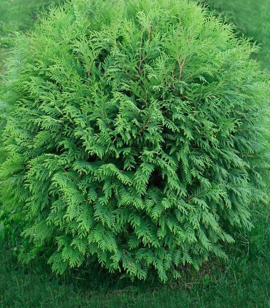 Туя шаровидная Вудварди — Этот сорт чрезвычайно популярен в Европе, в первую очередь, из-за своих декоративных свойств: насыщенного зеленого цвета, плотной формы кроны, красивого габитуса, отличной приживаемости и неприхотливости. Крона шаровидная, позднее становится более широкой, вырастает в высоту до 1,5 метров в 10 лет. Позднее крона становится более широкой, до 3м в диаметре, при 2,0-2,5м высоты. Одна из немногих туй, которая обладает округло яйцевидной формой кроны и достаточным ростом, чтобы выступать в качестве солирующего растения в композициях. Побеги густые, прямые , плоские. Хвоя от темно-зеленой до светло-зеленой.