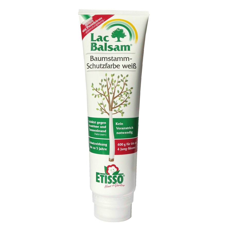 Lac Balsam защитная краска — это готовое к применению средство окрашивания стволов декоративных и плодовых деревьев. Окраска стволов деревьев предотвращает/снижает ущерб коре дерева, возникающий из-за мороза или жары.